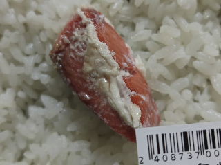 ↓米に対して、この鮭1切れ。